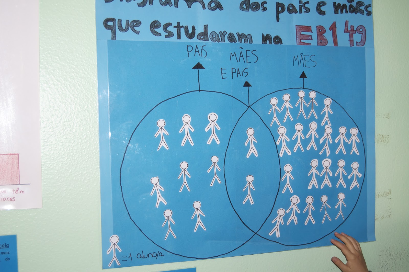 Fizeram gráficos de barras com os dados que recolheram em cada uma das turmas.Também fizeram um Diagrama de Venn para representar